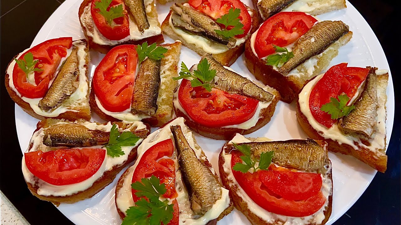 Бутерброди з шпротами та помідорами, запечені у духовці з сиром- неймовірно смакують як холодними так і гарячими!!