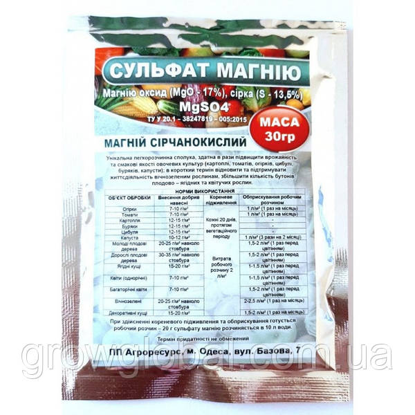 Сульфат магнію – це цінне джерело сірки та магнію. Особливо він високоефективний для тих культур, що відчувають гостру нестачу цих елементів для повноцінного р …