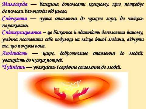 Співчуття Співчуття — це відчуття турботи і бажання полегшити страждання іншої людини. Воно також включає в себе два основні аспекти: 1.
