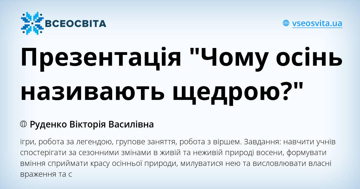 Осінь називають щедрою. Саме в осінню пору дозрівають плоди багатьох рослин. На полях зберуть картоплю, моркву, буряк. Урожай овочів надовго збережеться у комо …