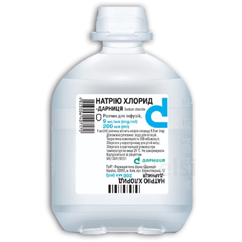 Фармакодинаміка. 0,9% розчин натрію хлориду нормалізує водно-сольовий баланс і ліквідує дефіцит рідини в організмі людини, який розвивається при дегідратації або через акумуляцію позаклітинної рідини у вогнищах великих опіків і травм, при операціях на органах черевної порожнини, перитоніті.