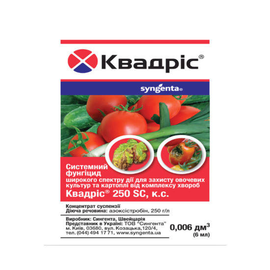 Квадріс® Топ використовують для комплексного захисту картоплі й томатів від фітофторозу та видів альтернаріозу, а також для захисту цибулі та часнику від пероноспорозу, альтернаріозу і стемфіліозу. Перше обприскування рекомендується проводити в фазу бутонізації томата і картоплі.’);}],[{id:’PXxvaJ6SJryki-gPovqaSA__83′},function(){window.jsl.dh(‘PXxvaJ6SJryki-gPovqaSA__83′,’