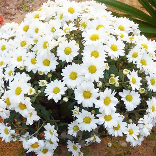 Квіти мають діаметр від 6 до 10 см і складаються з білих пелюсток, що прикрашені жовтим серединним диском. Квітіння рясне і триває зазвичай в червні та липні.