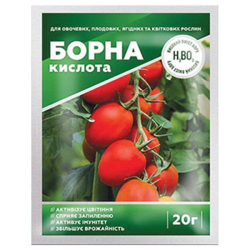 Ефективне підживлення легко приготувати самостійно. «Для цього потрібно 2-5 г порошку борної кислоти розчинити у 10 л води. Концентрація залежить від того, наскільки значні ознаки борного голодування: чим вони вираженіші, тим міцнішим має бути розчин», — кажуть експерти.29 Jun 2022