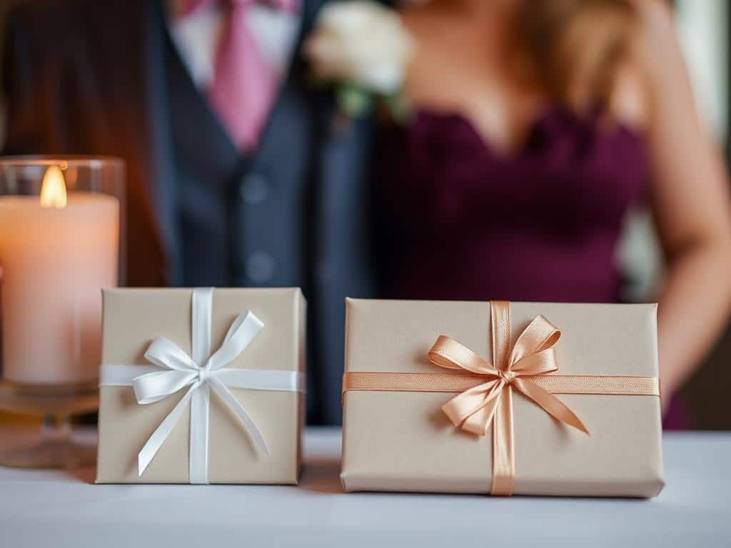 Якщо вінчання відбуватиметься в той самий день, що й весільна церемонія, то про дорогі подарунки краще й не думати. Свідки можуть подарувати символічних янголят, парні браслети на двох з деревини, а також маленькі іконки для автомобіля і будинку.