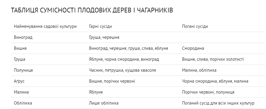 Таблиця сумісності плодових дерев і чагарників · Абрикос – не варто вирощувати поруч із персиком, грушею, яблунею, волоським горіхом. · Фундук – цю культуру …