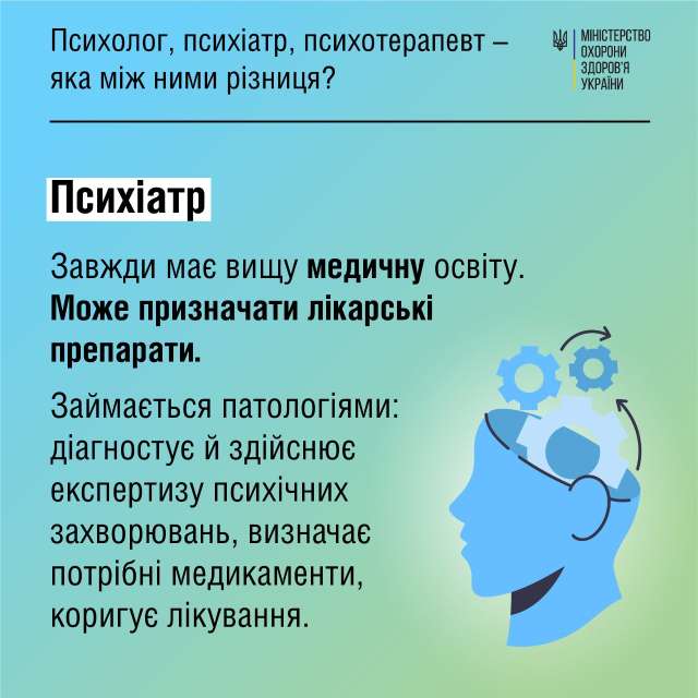 Психіатр ставить діагноз, складає план лікування і є єдиним, хто призначає ліки. На відміну від психолога чи психотерапевта, він не лікує словами, тому ви не п …