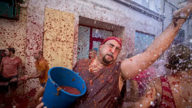 В іспанському містечку Буньол почалася щорічна Томатна битва. Загалом, під час свята використовують більше 100 тон червоних помідорів. В Іспанії шалено кидаються помідорами. 717 views · 11 years ago …more. BBC News Україна. 620K. Subscribe. Like.