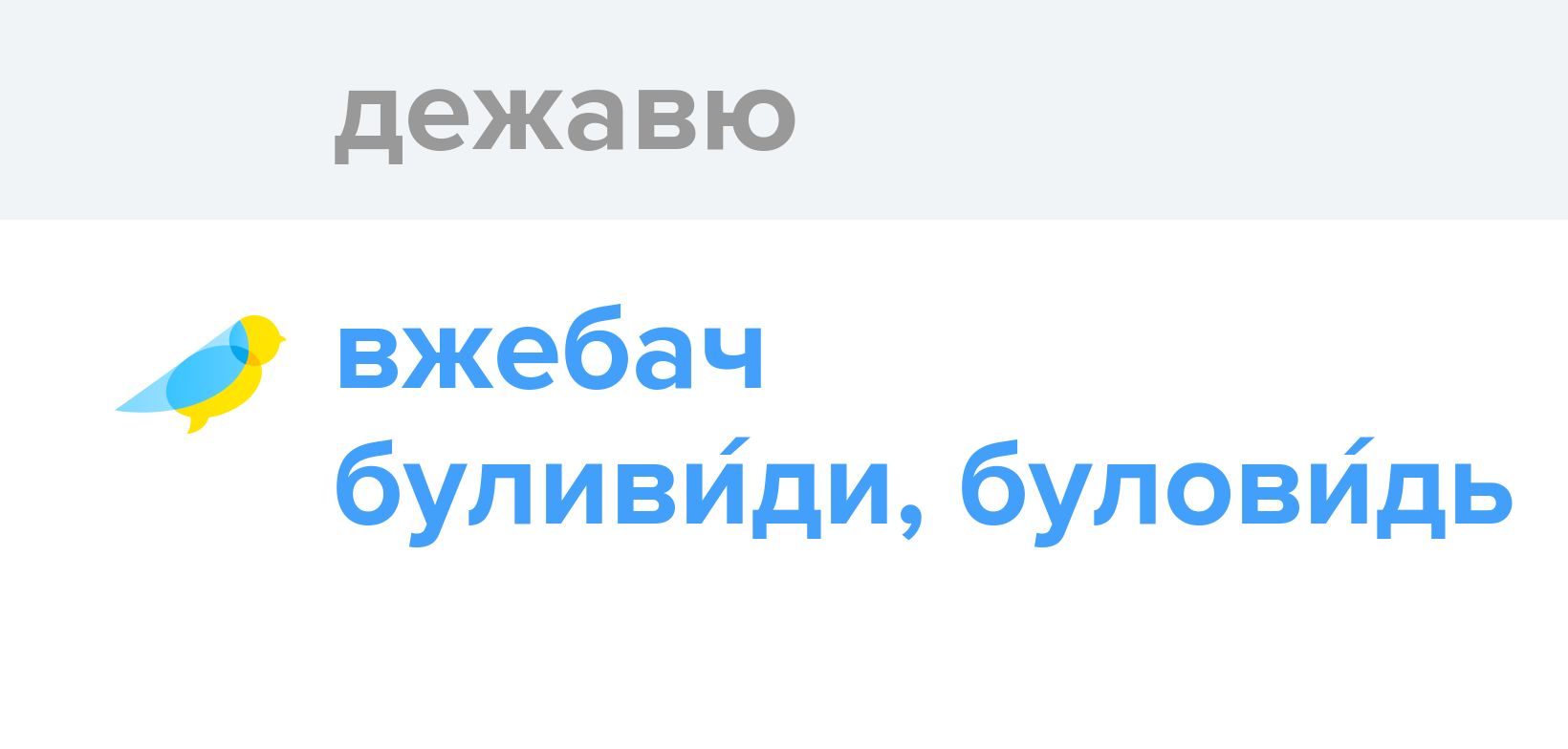 Дежавю — психічний стан, коли людина відчуває, що вона колись вже була у такій ситуації. Найкращий переклад — Вжебач (8 голосів). Приклад вживання — дежавю