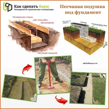 Для того, щоб облаштувати піщану подушку в стрічковому фундаменті, буде потрібно наявність: … саморобні агрегати допоможуть утрамбувати …