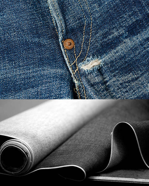 Нині відоме китайське, туніське, турецьке, індійське, американське, бразильське або японське виробництво джинсових тканин. Денім, що використовується для пошиття джинсів, це бавовняна тканина, у якої поздовжні нитки (основа) — білі, а поперечні (утік) — темно-сині, забарвлені індиго.