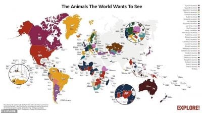 В результаті найпопулярнішою твариною в світі виявився тигр, який зайняв перше місце в 44 країнах. На другому місці опинилися бегемоти – в 25 к …